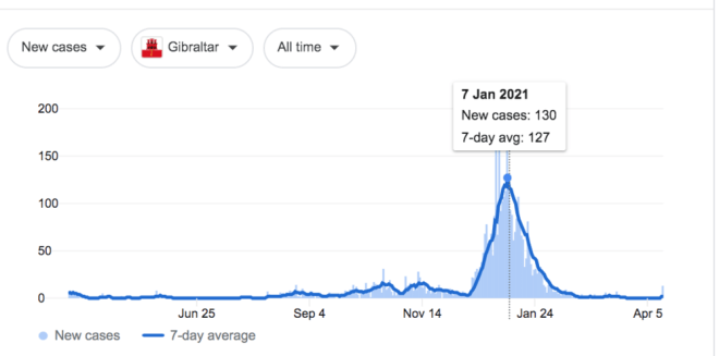 We remind readers that from the first graph below, and from other articles we’ve published, Gibraltar through 2020 was largely unaffected by the Covid problem.