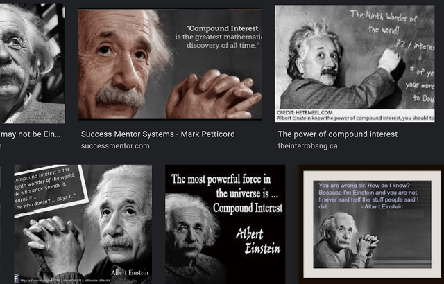 Einstein, like Churchill, Twain, and Napoleon, is a Quote Magnet to whom random sayings become attached in the popular mind. One of the most beloved pseudo-quotes attributed to Einstein is his praise, however phrased, of compound interest.