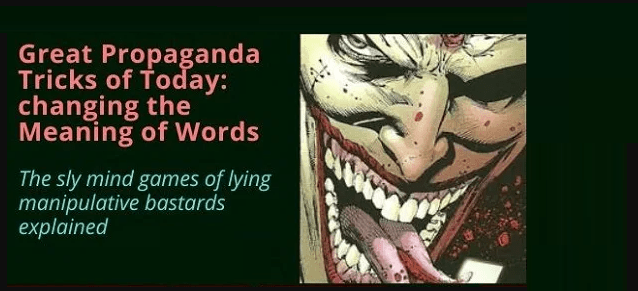 Propaganda by the redefinition of words is a basic much-used device used by dishonest manipulative bastards since the earliest control cults decided it would be a splendid wheeze to have large numbers of human beings as their cattle or slaves. Its use by the enemies of humanity during the Covid psyop provides fine contemporary examples that illustrate amply how it is done. Understanding how these mind games are played frees you from mind control.