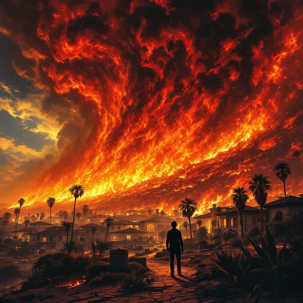In a world undergoing hydroclimate whiplash, the latest apocalyptic catastrophe has now befallen one of the richest cities in the world in the richest nation on Earth. Warm 100 mile per hour winds have spawned walls of fire reaching more than 100 feet in height within the city of Los Angeles, obliterating entire neighborhoods for as far as the eye can see and blanketing the city with a pall of toxic substances. A reporter who was there at the time said those hurricane force winds made it impossible for him to walk, as he was forced to take shelter in an abandoned car. A fire chief for the city said he had never seen a fire storm of such strength and magnitude in his entire multidecadal career. Experts are quoted as saying a firewall from a ten lane highway would not have stopped the Palisades inferno, with winds carrying embers miles ahead of the fire. As of today, warnings have been issued again for the imminent return of those ominous Santa Ana winds. The dryness levels of air, soil, and vegetation in California have been “literally off the chart.” The ongoing LA fires will likely become the costliest natural disaster in US history and help create a record-breaking year for property loss from extreme disasters. As this Pyrocene Age continues to gather force, a climate change-denying US President, who promises to erase any sort of facade about caring for the environment or curbing GHG emissions, has been sworn in again for another round of kleptocracy. Pseudo president-elect Musk, who believes that the primary threat to civilization is a dwindling human population, will have his own office in the White House complex.
